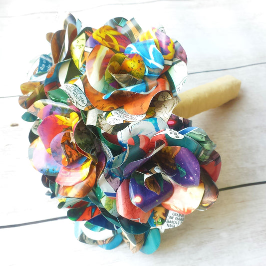 Map Rose Paper Flower Bridal Bouquet - Wedding Flowers