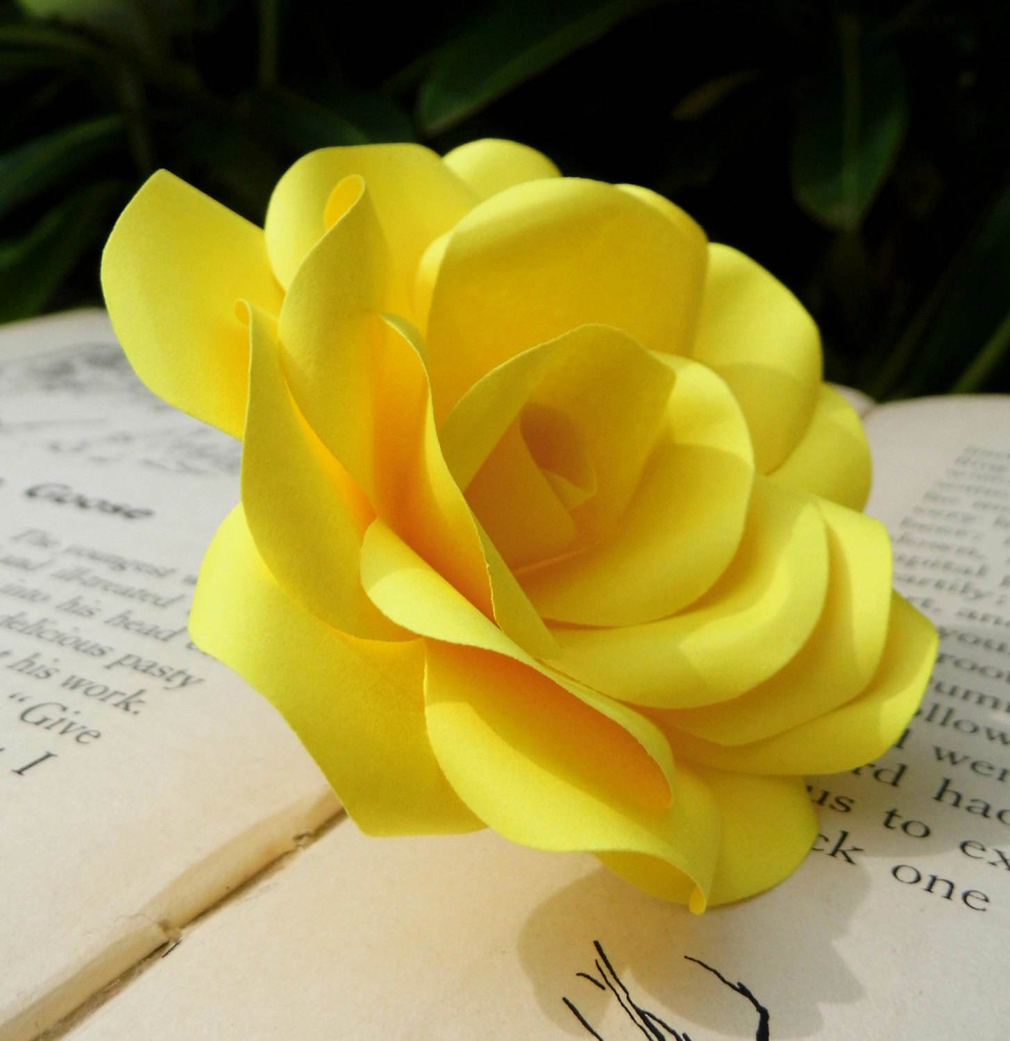 These beautiful paper roses are handmade from yellow paper before having each petal individually shaped by hand.